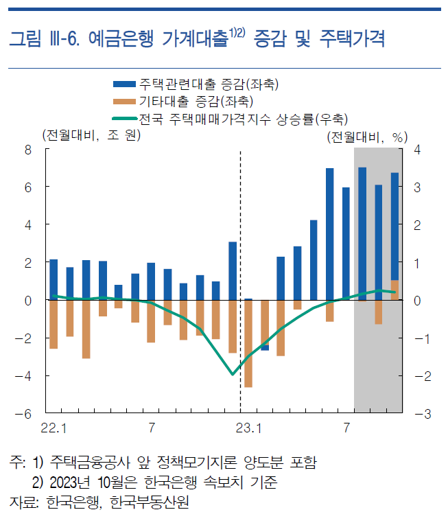 무주택자들은 지난 몇 년간의 두려움에 높은 금리를 예상하고도 주택을 매수해 주담대 대출액이 급격히 증가하였습니다.