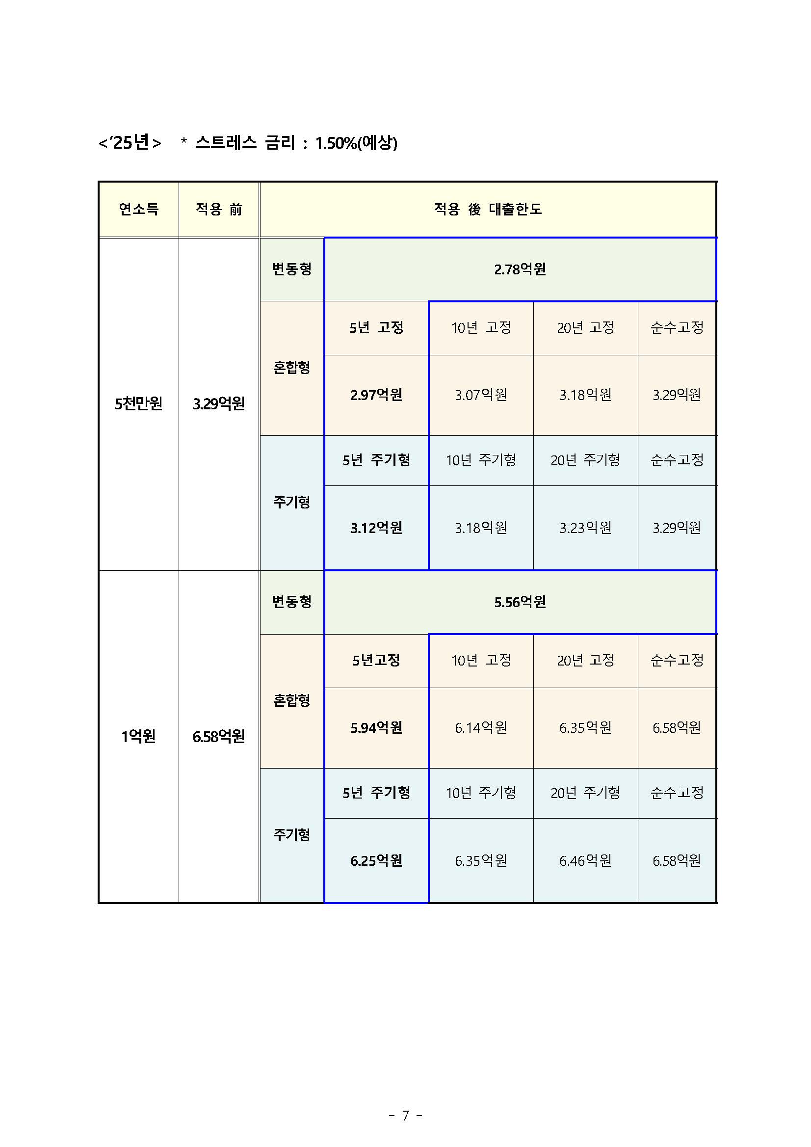 2025년부터 스트레스 DSR금리 100% 적용 대입하면 대출 총액이 큰 폭으로 줄어드는 걸 확인 수 있습니다.