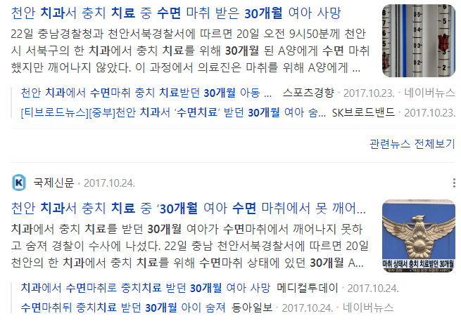 30개월 아기 수면치료로 검색하면 많은 부모님들이 저와 같은 걱정과 조심스러움이 있었고 6년 전 안타까운 기사가 눈에 많이 보였기 때문입니다.