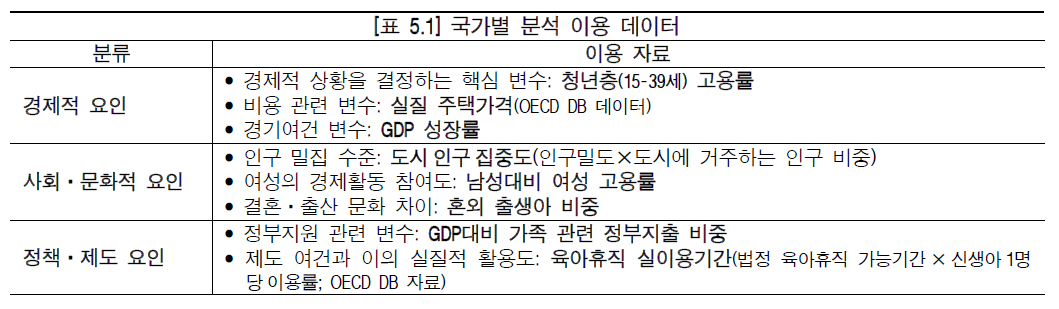 이런 문제점들을 해결하기위해 OECD 국가들의 패널자료를 분석해 적책대응을 논의하였다고 하는데, 국가별 분석 이용데이터는 다음과 같습니다.