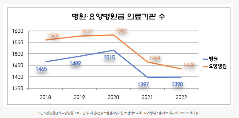 재미있는 건 최근 5년간 병원급과 요양병원의 수는 줄어들고 있다는 겁니다.