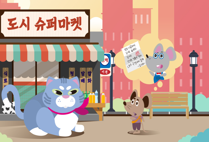 밭에서 일하던 시골 쥐에게 편지 한 통이 날아옵니다.
