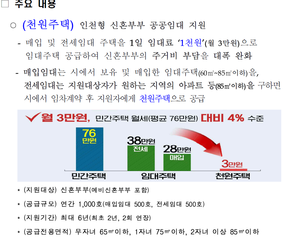 < 인천형 신혼부부 공공임대 지원(천원주택) 개요>