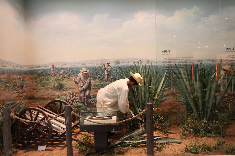 에네켄(henequén) 기계는 2005년 12월에 한국이민사박물관 개관을 위해 멕시코 티치몰아시엔다(Ticimul Hacienda)에서 구입한 유물이라고 합니다.