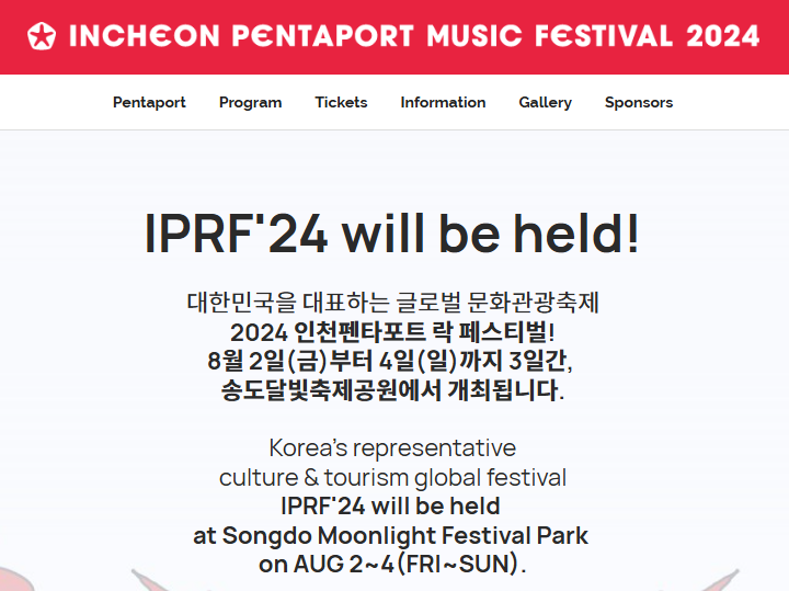 2024 인천 펜타포트 락 페스티벌은 8월 2일(금) 부터 4일(일)까지 3일간, 송도달빛축제공원에서 개최됩니다.