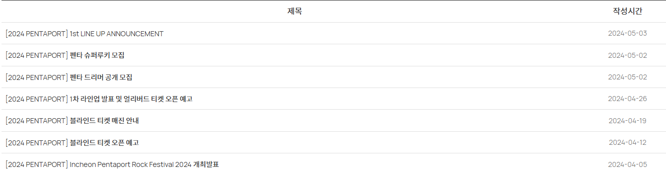 모든 자료는 인천펜타포트 락 페스티벌 홈페이지에서...