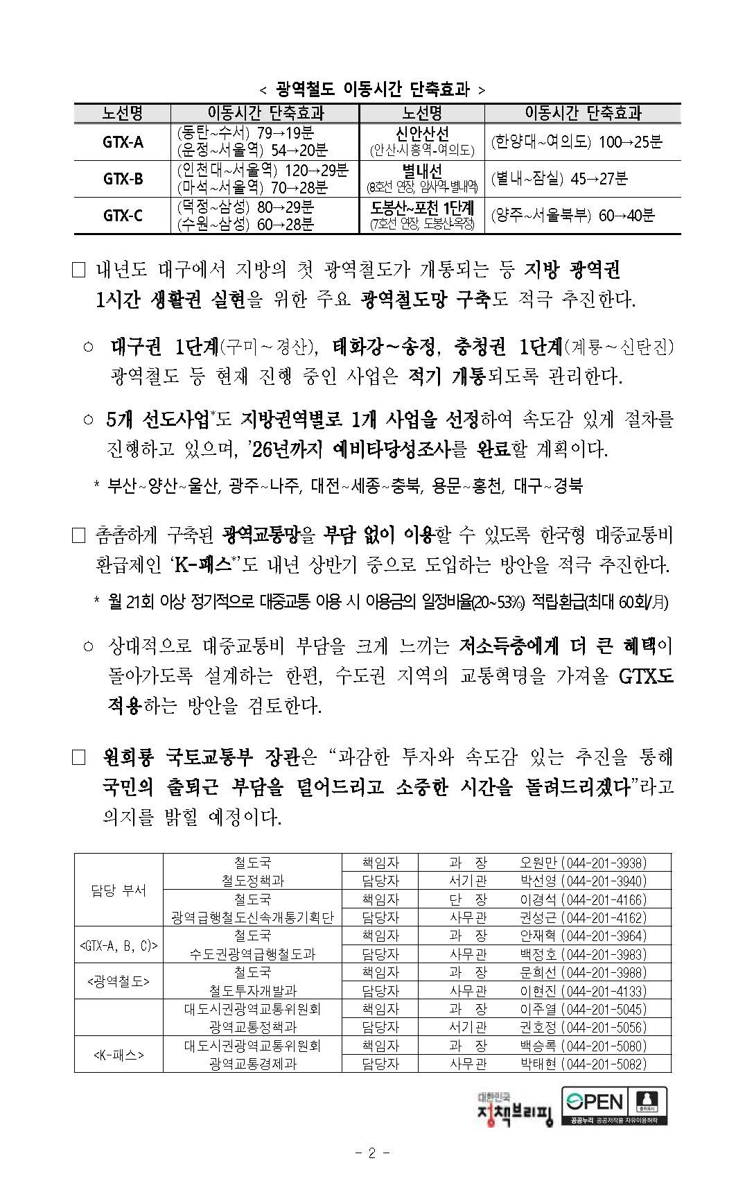 해당 자료에는 광역교통 추진현황 및 성과도 첨부되어 있었지만 첨부하지 않았습니다.