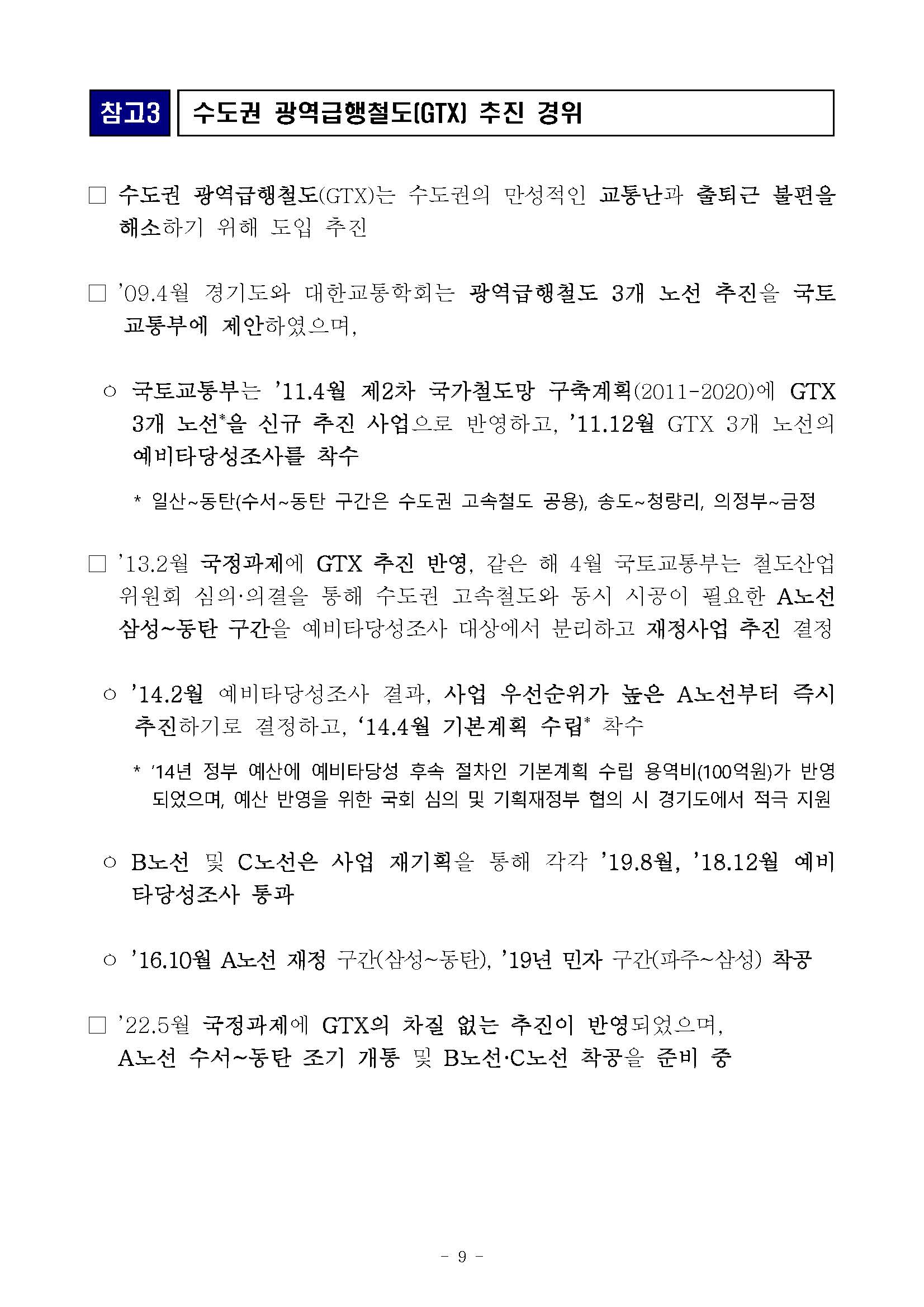 마지막 참고자료는 모두 다 아시는 내용이지만 광역급행 철도에 대한 추진 경위를 설명해주고 있습니다.