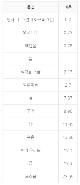 [ 금속의 물리적 성질 "비중" ]