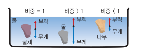 떤 물체의 부피에 해당하는 만큼의 물의 무게에 대한 그 물체의 무게비를 비중(Specific Gravity) 라고 합니다.